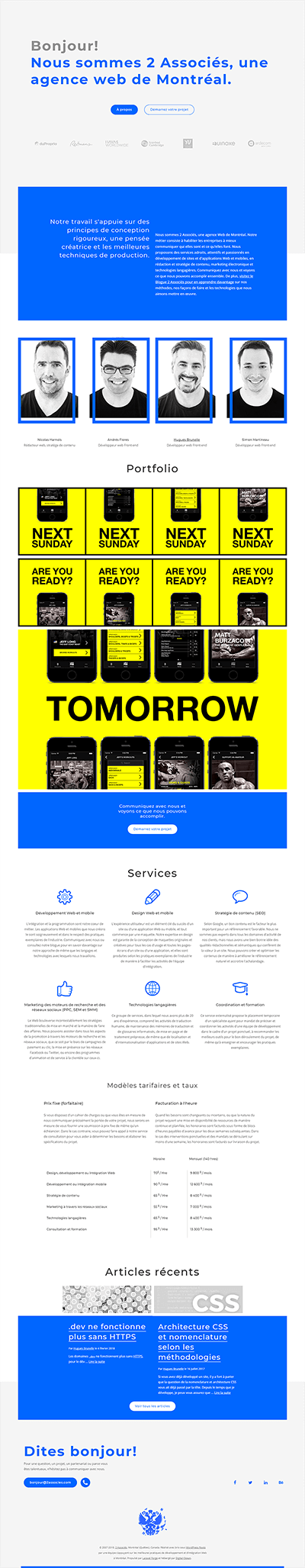 2 Associés sont ceux avec qui je fais principalement affaire. Ils sont mes modèles dans le monde des affaires et du web. Faisant partie de l'équipe de développeurs, j'ai été responsable d'une quantité de tâches d'intégration sur leur site web et sa nouvelle version.